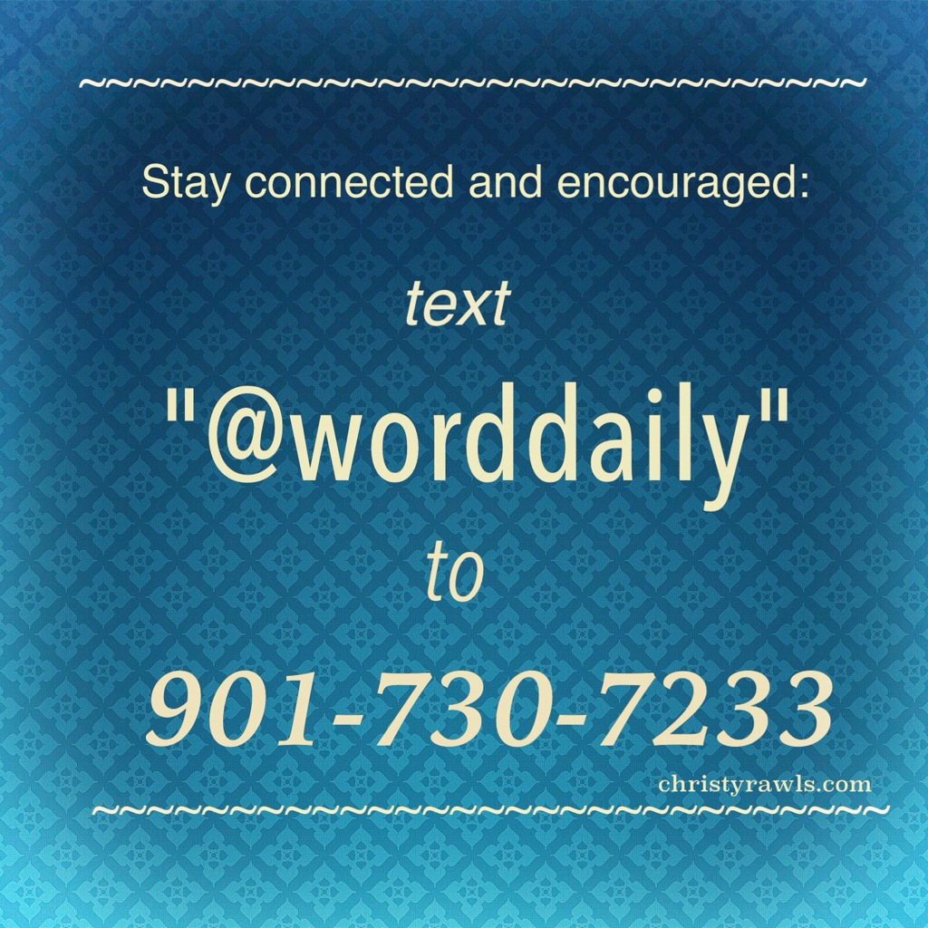 Texting “@worddaily” (no spaces and including the “@” symbol) will activate a quick verse or word of encouragement from me once a day. I won’t be able to view your cell number and you can’t see mine. You will not be spammed. You won’t even be able reply to me with this system. It’s just me. Live from my cell phone.